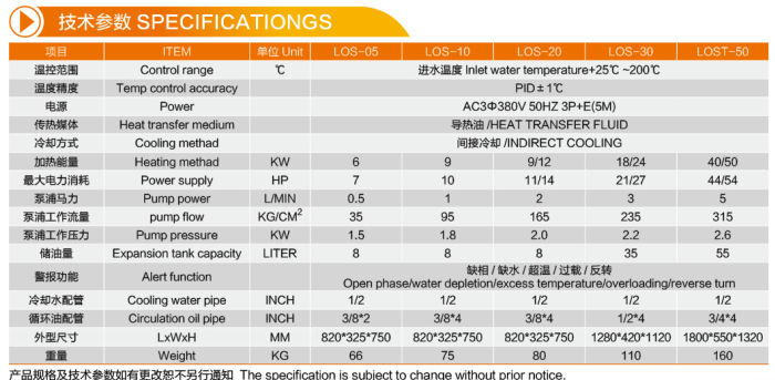 油溫機需要注意的事項最主要是與生產工藝相契合,應根據生產工藝的實際需求來進行選擇,如油溫機還具備吹氣回油、RS485通訊功能等其他選配功能.詳細請查閱http://www.ldsrzs.com油溫機從最高使用溫度上來說分為200度油溫機、300度油溫機和350度油溫機三大類型,所對應的控溫范圍分別是常溫-200度、常溫-300度和常溫-350℃.