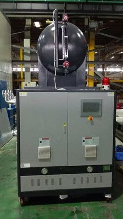冷熱兩用控溫機是由導熱油循環泵、加熱管、冷卻換熱器、制冷系統、溫度控制系統、管路及機架構成的。導熱油在機組的熱媒體管路以及被控溫設備的換熱器之間進行流動,例如模具的流道、輥筒內的熱流道、反應釜夾套或盤管等等,循環泵浦、導熱油管路、加熱裝置以及冷卻裝置構成了熱媒體的基本回路。通常情況下,導熱油被油泵不斷泵出,成為具有一定動能的流體,導熱油流經加熱器、冷卻裝置,并到達被控溫設備,在和被控溫設備發生熱交換后,流回到機組內進入下一次循環。