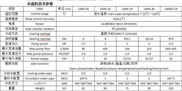 120°C 運水式模溫機設有多項保護設置,溫度異常時,循環溫度上限值警報并切斷主電源,接觸器卡死異常加熱報警并指示,系統壓力異常自動停止加熱動作,BY-PASS泄壓回路保護泵浦,液位開關檢測水位防止缺水并報警指示,保護故障顯示,維修保養無須人員.